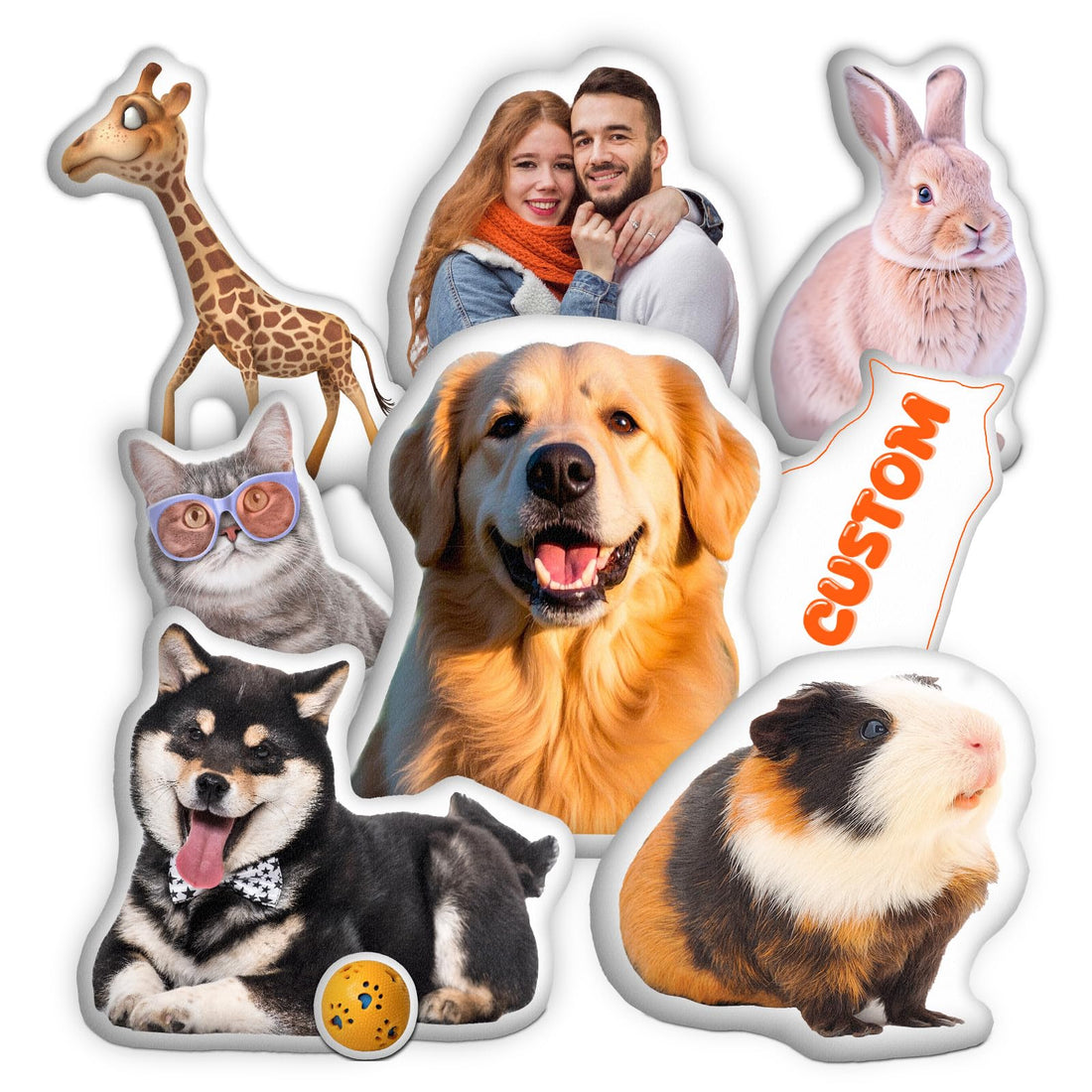 EOBIBIFUN Custom Pet Pillows with Picture, Customized Pet Pillow Personalized with Dog Cat Shaped, Custom Stuffed Animal for Pet Memorial Gifts for Loss of Dogs Cats, Funny Pillow with Face